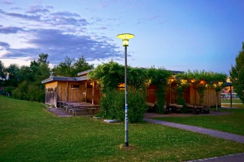 Der Holzbau des Unithekles nebst Biergarten erfreut sich bei Studenten, Doktoranten und vielfältigen Stammtischen großer Beliebtheit.